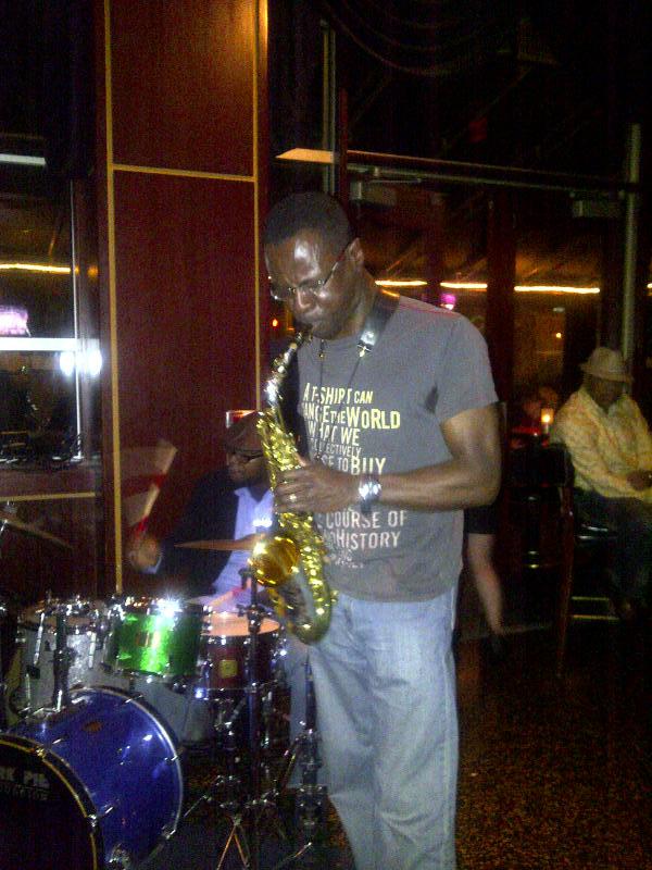 Thursday night came and everyone met. Our party consisted of Delfeayo and most of the company of Sweet Thunder, plus two lovely ladies who loved jazz: Michele White of the Jazz Institute of Houston and her cousin Nicole. Delfeayo greeted me warmly and thanked me for my efforts in support of the tour. We then sat down for a good meal and even better conversation about topics ranging from food, to families to chivalry (or the lack thereof, especially when it comes to a family style meal) and of course, jazz. There were many laughs, a few thought-provoking moments and one communal groan, when saxophonist Mark “Preacherman” Gross stood up and told a long story, before leading us in a heartfelt toast.